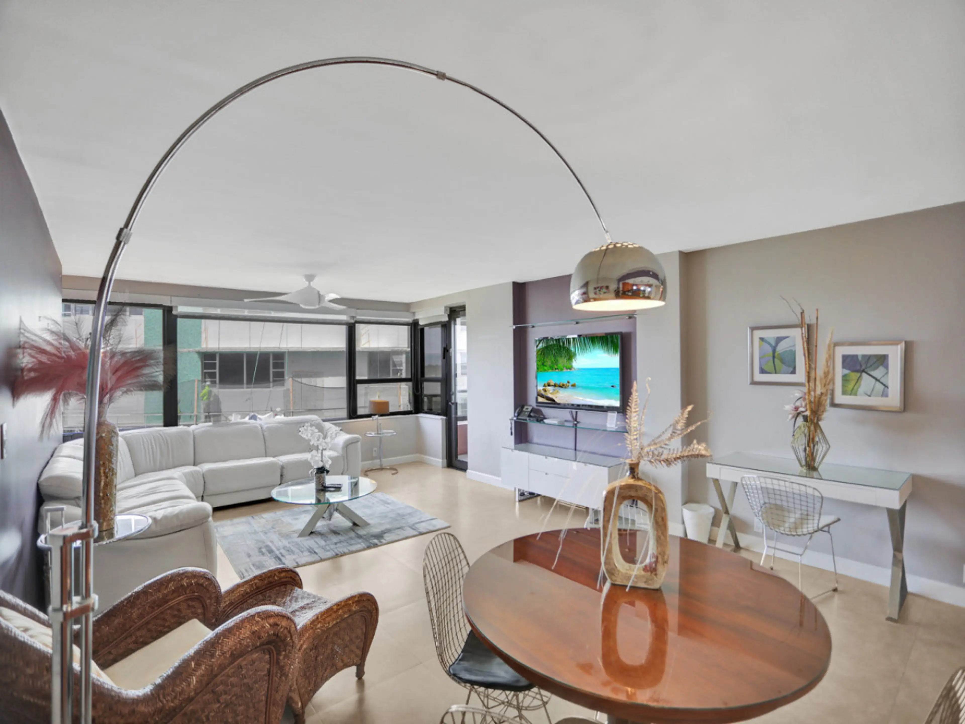 This stylish 2-bedroom, 2-bathroom apartment seamlessly combines comfort and functionality. The spacious living room, featuring a luxurious leather sofa and a versatile rolling bed, creates a welcoming atmosphere. The indulgent master bedroom and elegantly appointed guest bedroom offer a perfect ble...